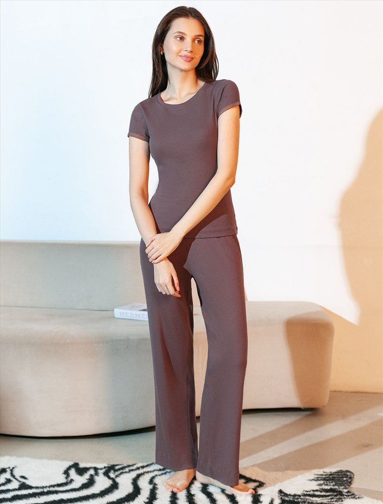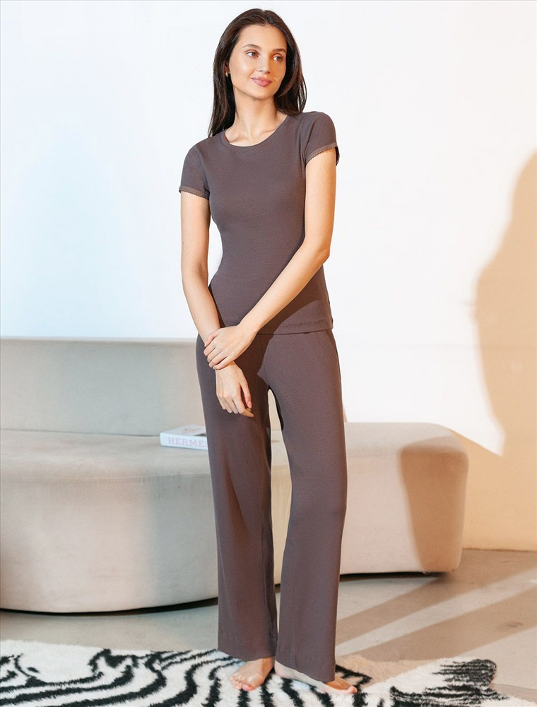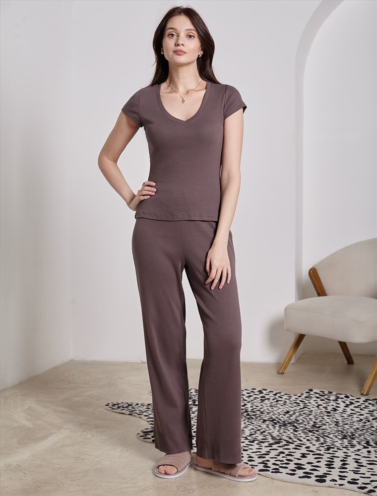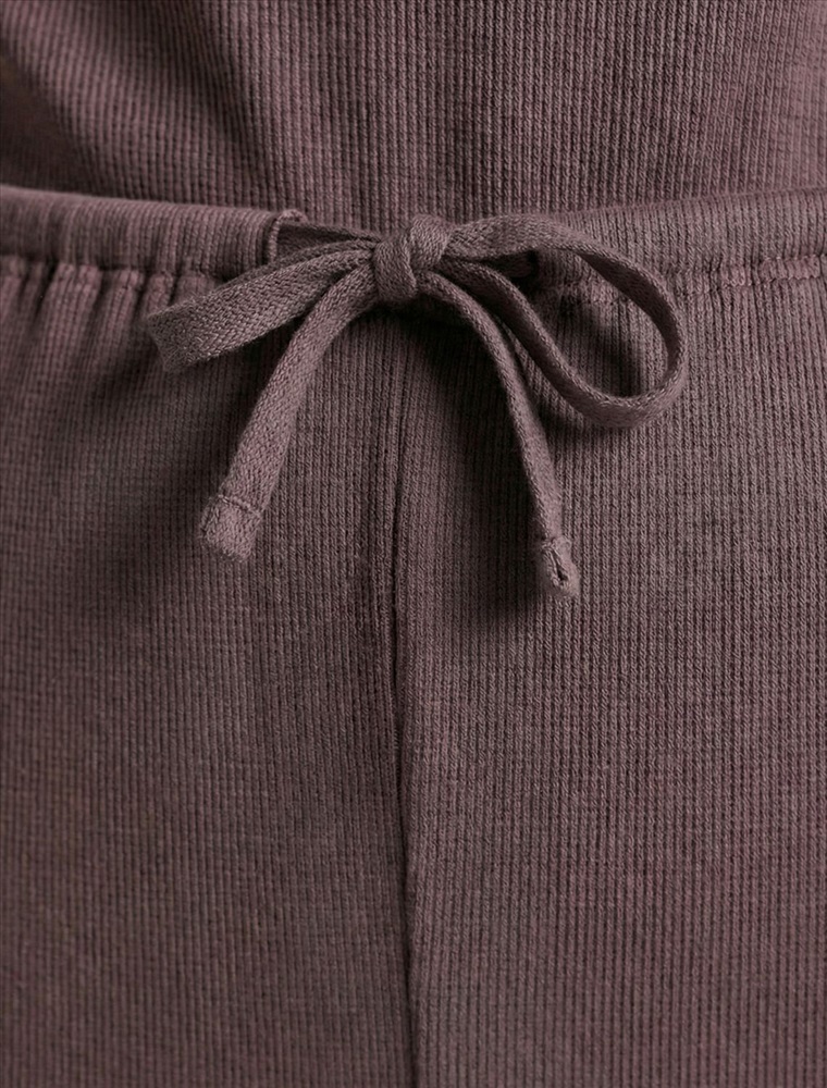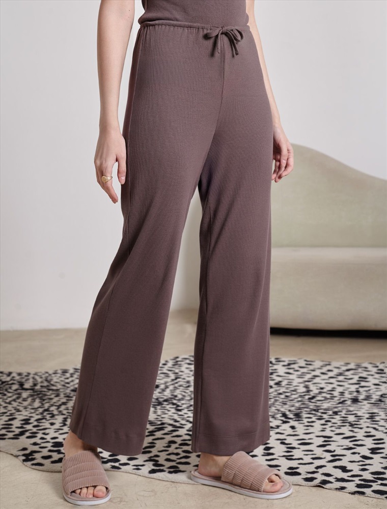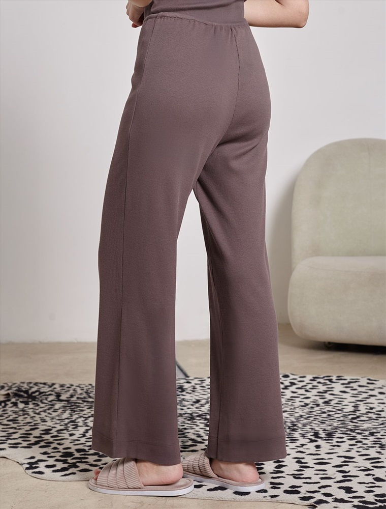 Прямые брюки с поясом на резинке из фактурного трикотажа в рубчик 7 фото