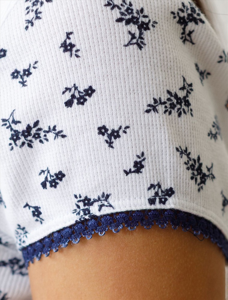 Короткие шорты на резинке с вышивкой из фактурного трикотажа в мелкий рубчик 7 фото