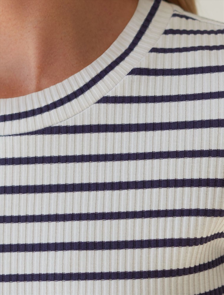 Топ с круглым вырезом из фактурного трикотажа в рубчик 4 фото