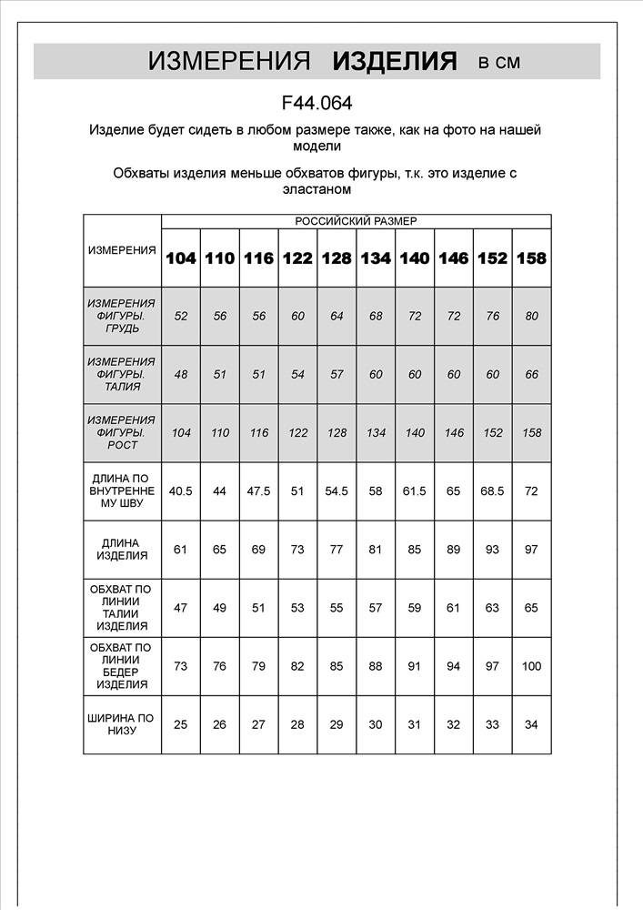 Размер: 104, 110, 116, 122, 128, 134, 140, 146, 152, 158