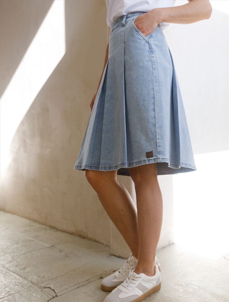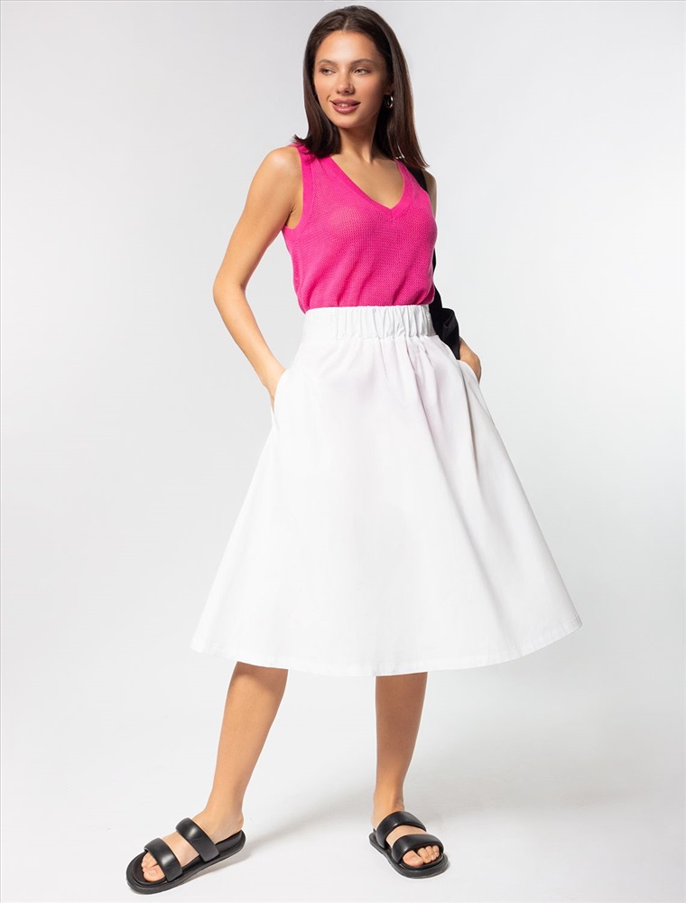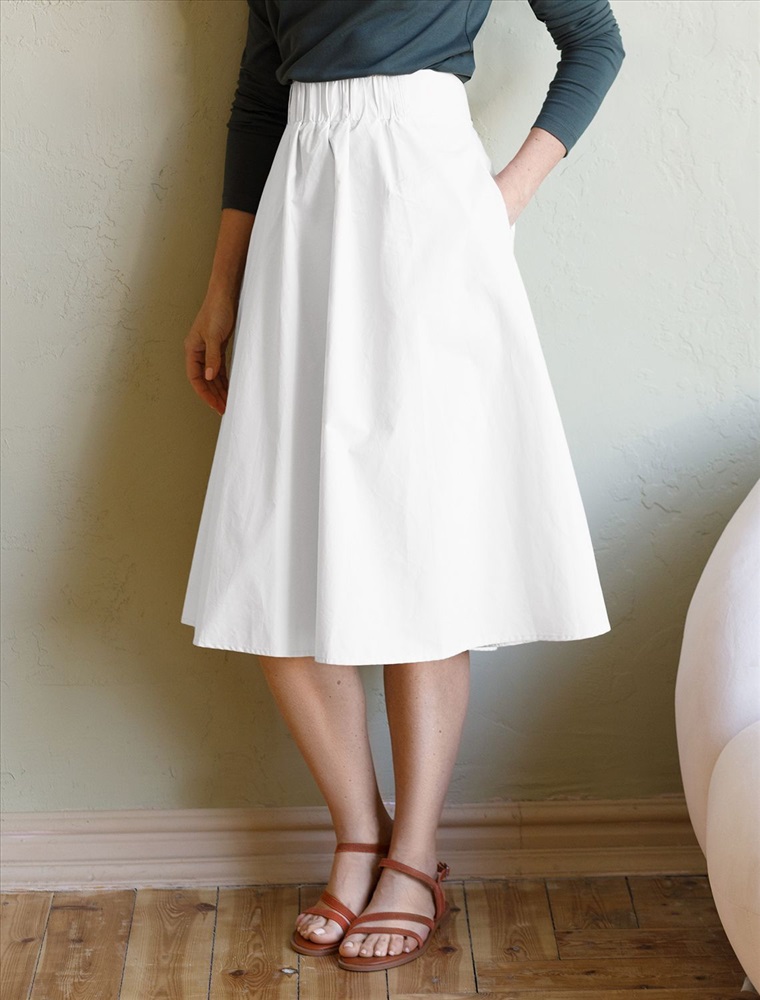 Юбка на широкой резинке с карманами из плотного поплина 7 фото