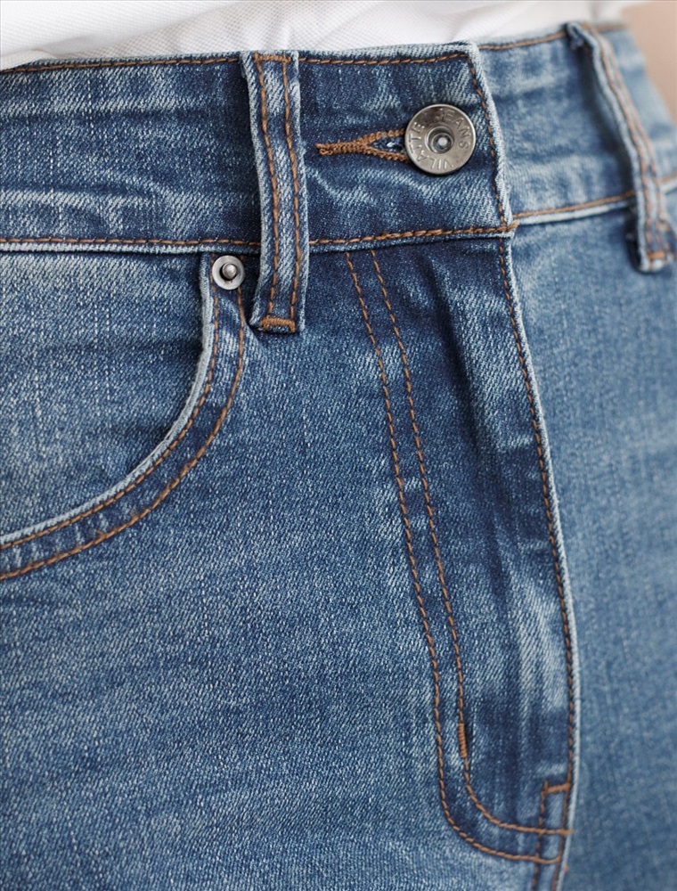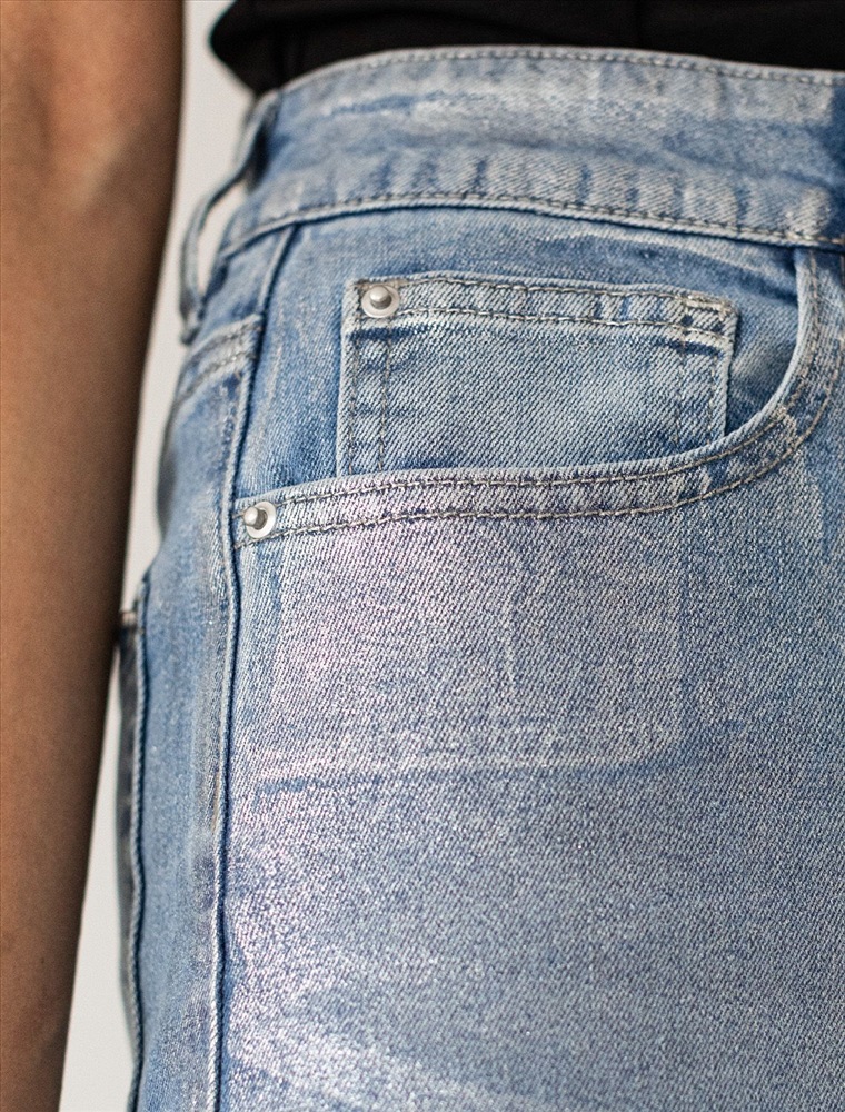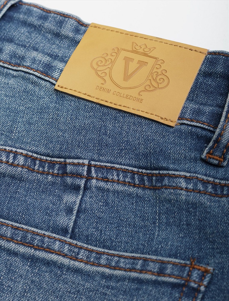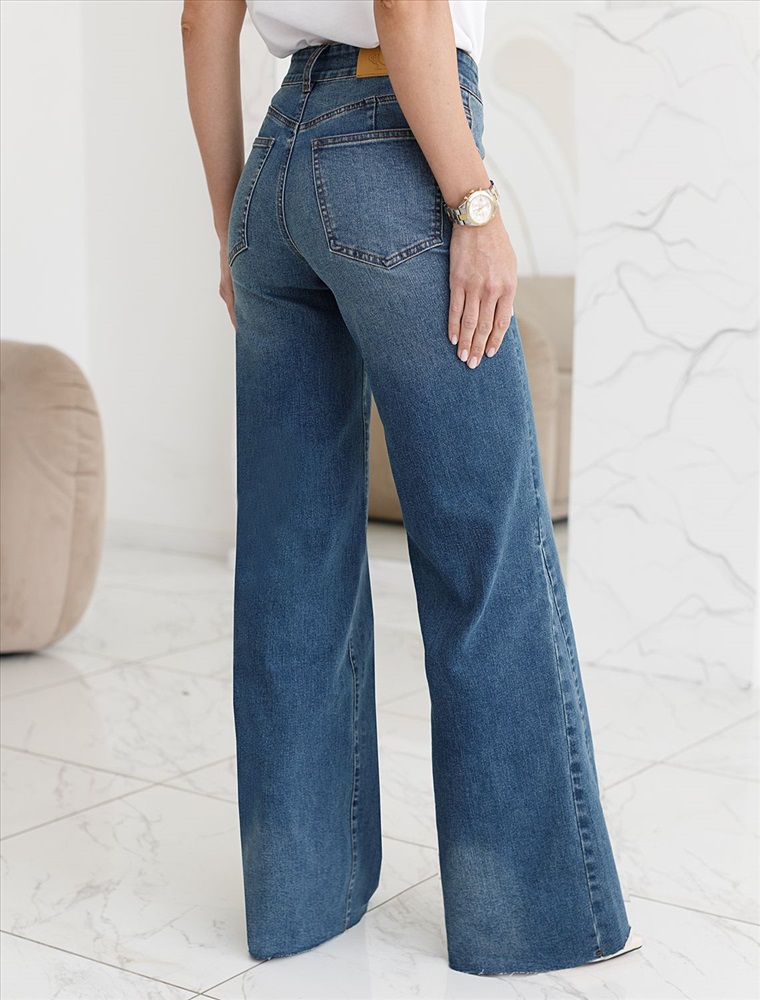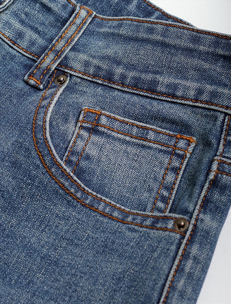 Джинсы трубы с декоративной стиркой из эластичного плотного денима 8 фото