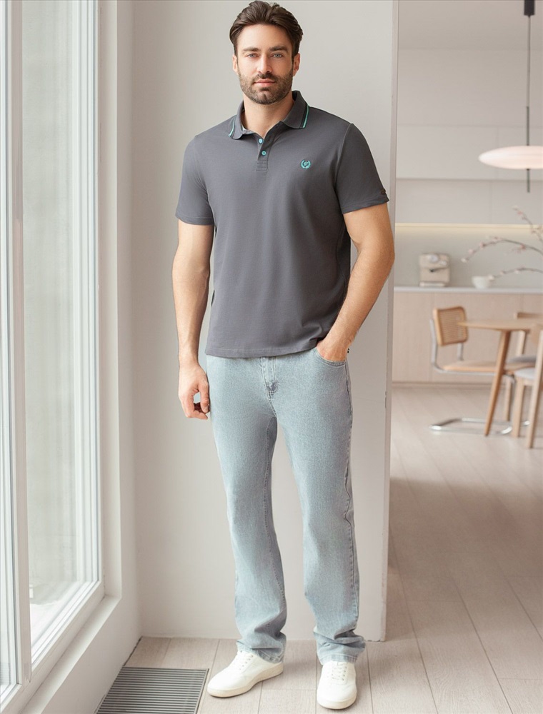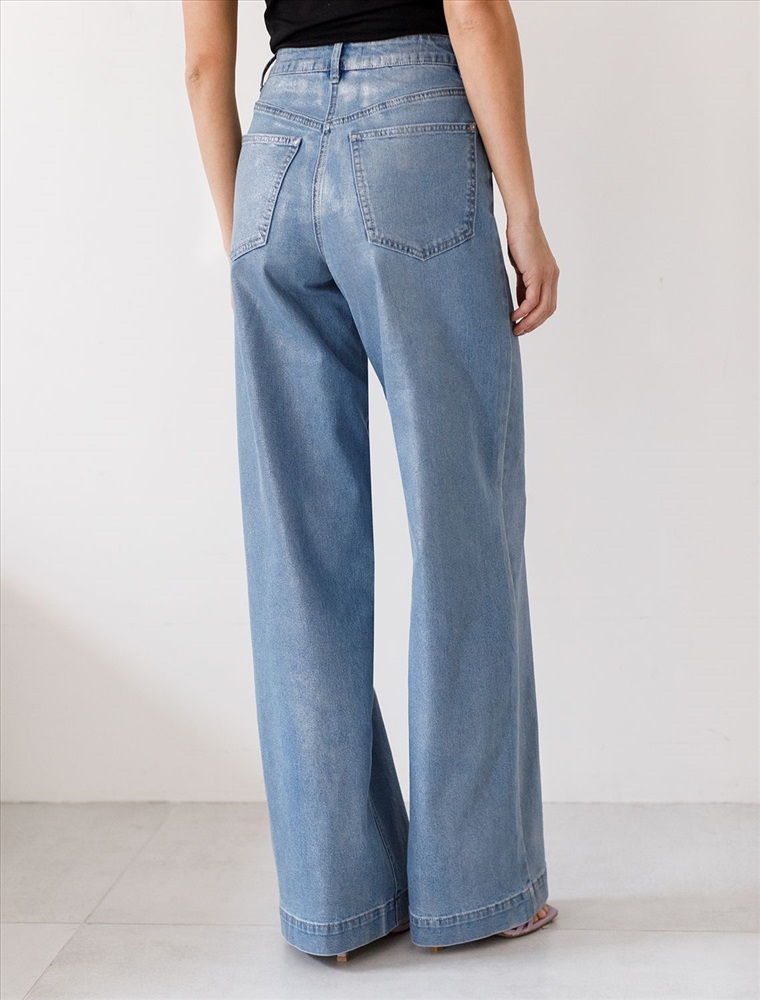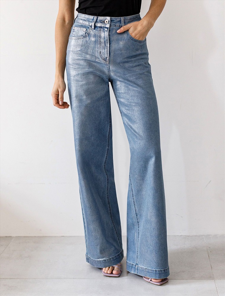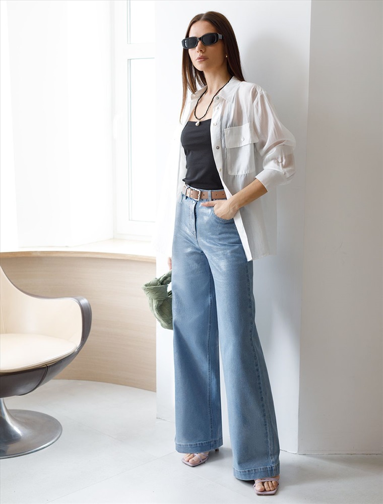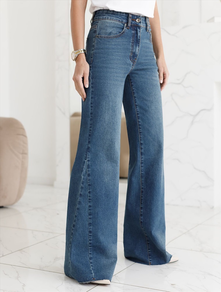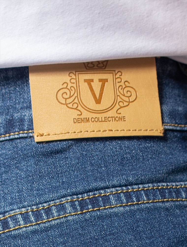 Джинсы трубы с декоративной стиркой из эластичного плотного денима 8 фото
