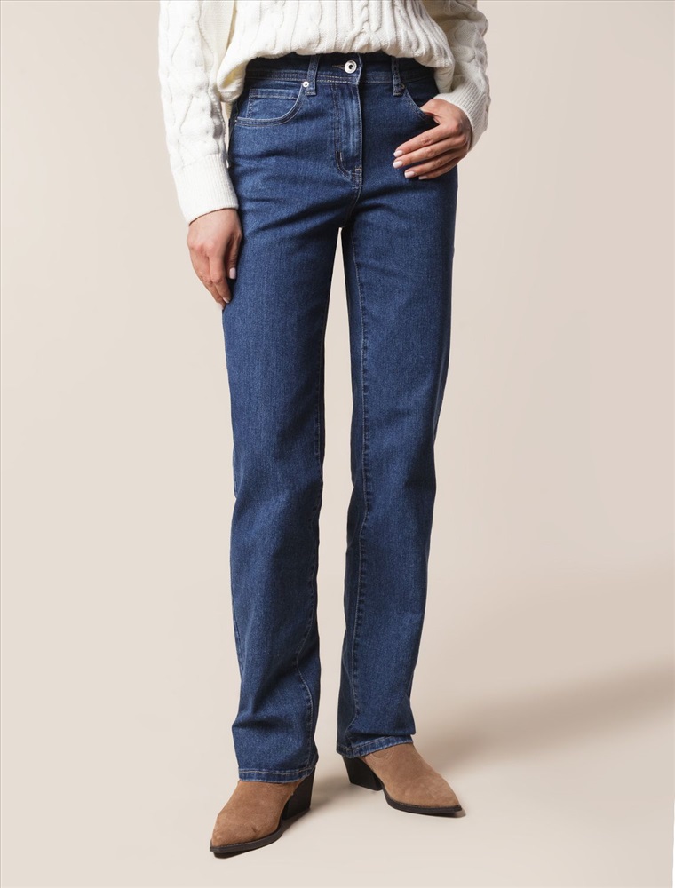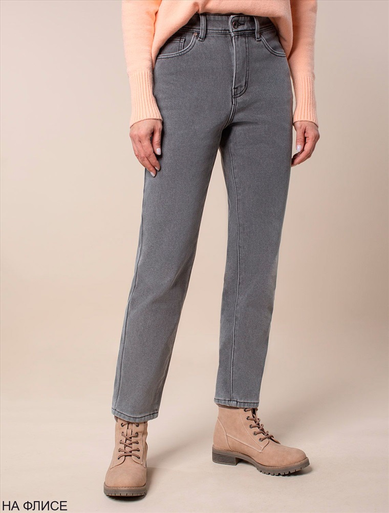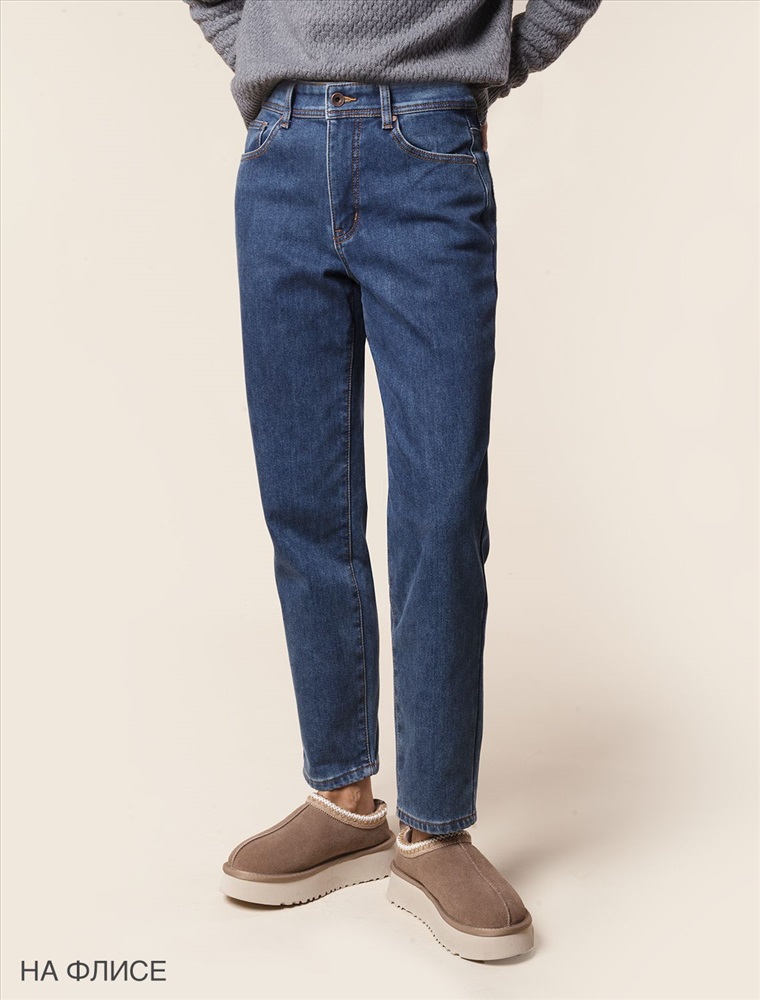 Прямые джинсы из эластичного денима на флисе 8 фото