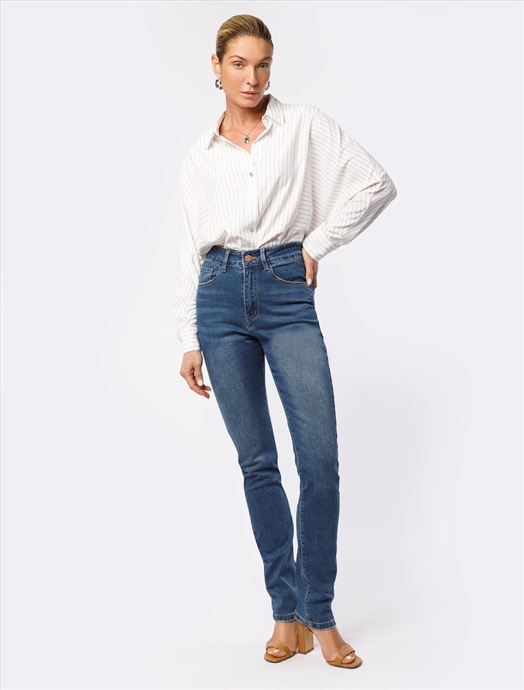 Укороченные прямые джинсы из супер-эластичного денима 6 фото