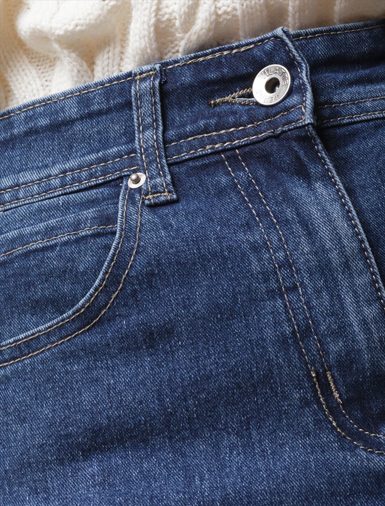 Джинсы-трубы из эластичного денима на флисе 7 фото