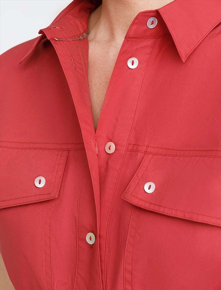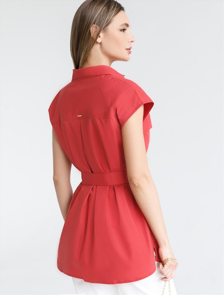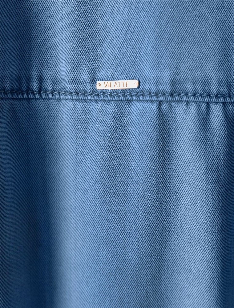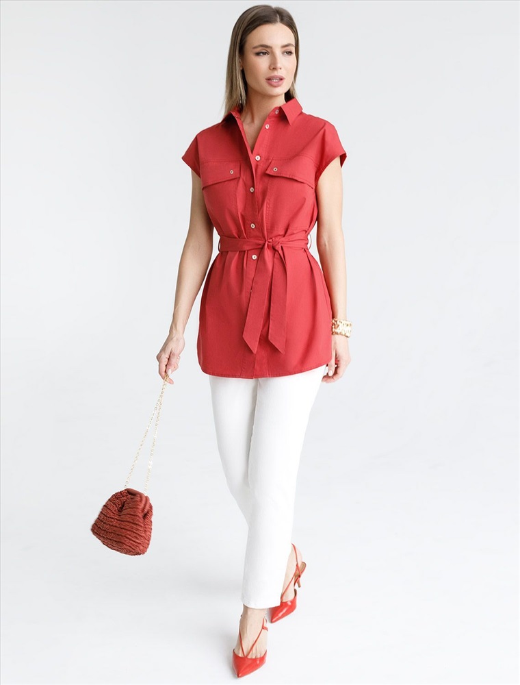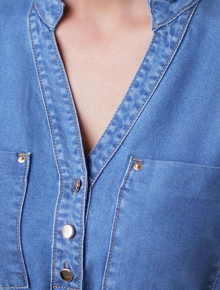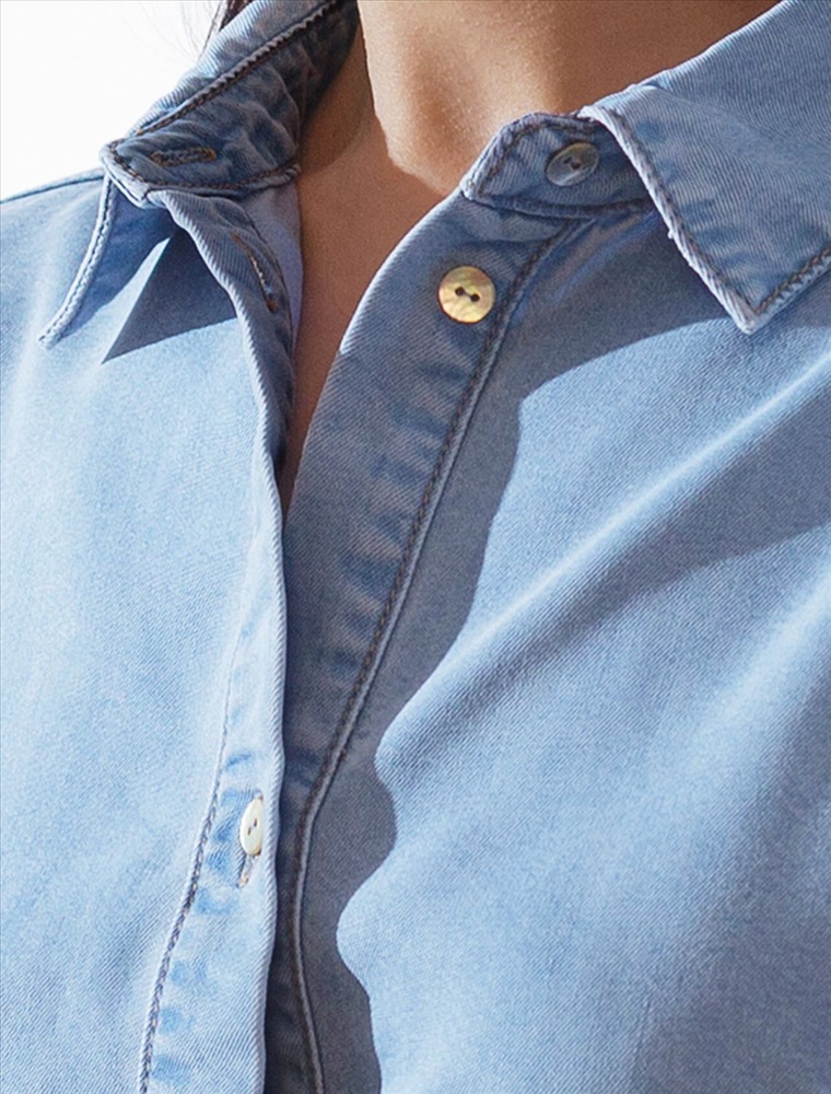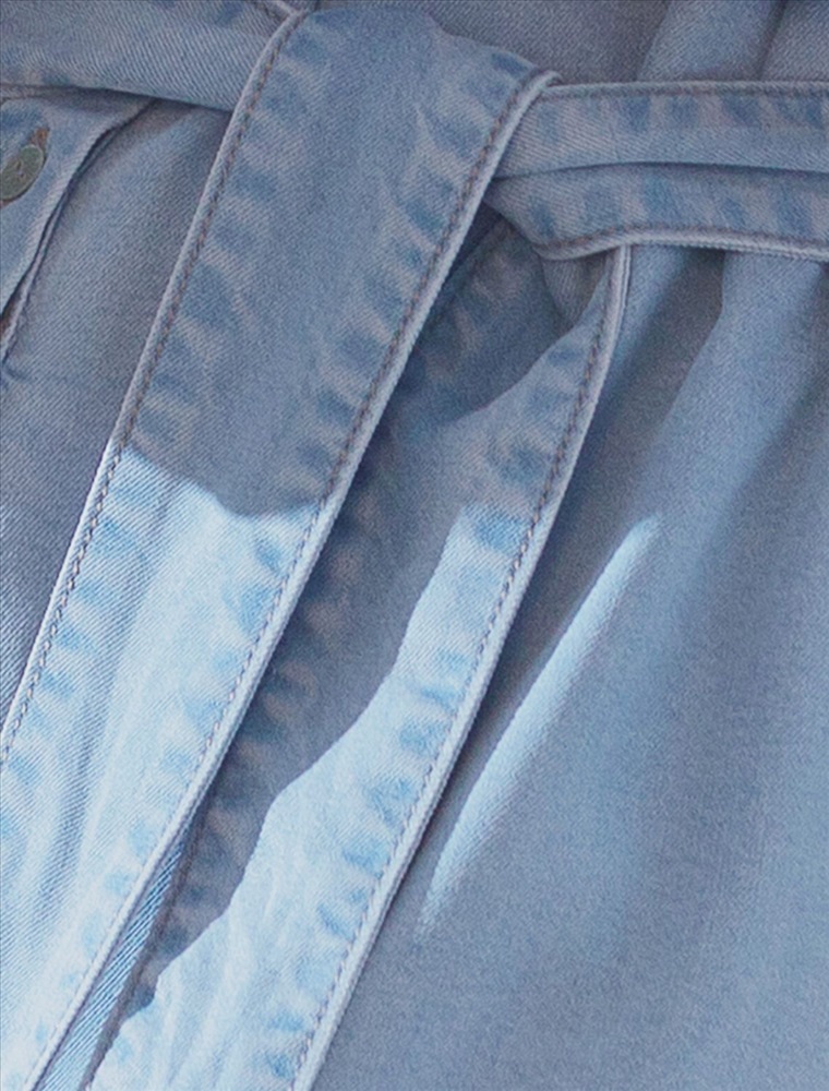 Удлиненная блузка с поясом и карманами из джинсового лиоцелла 6 фото