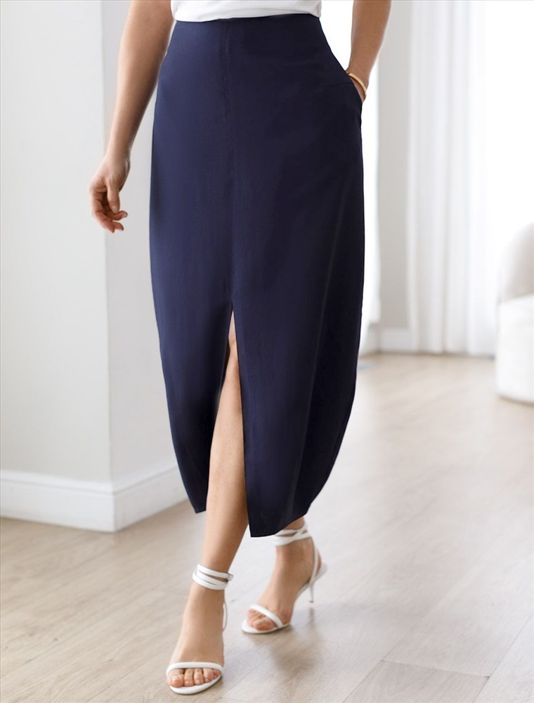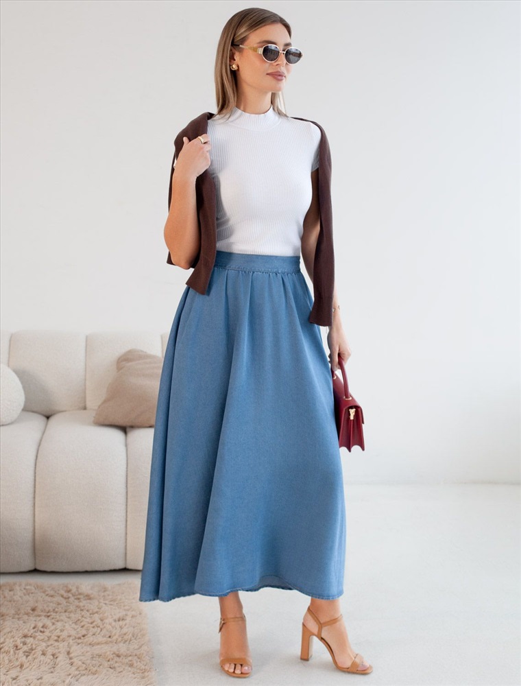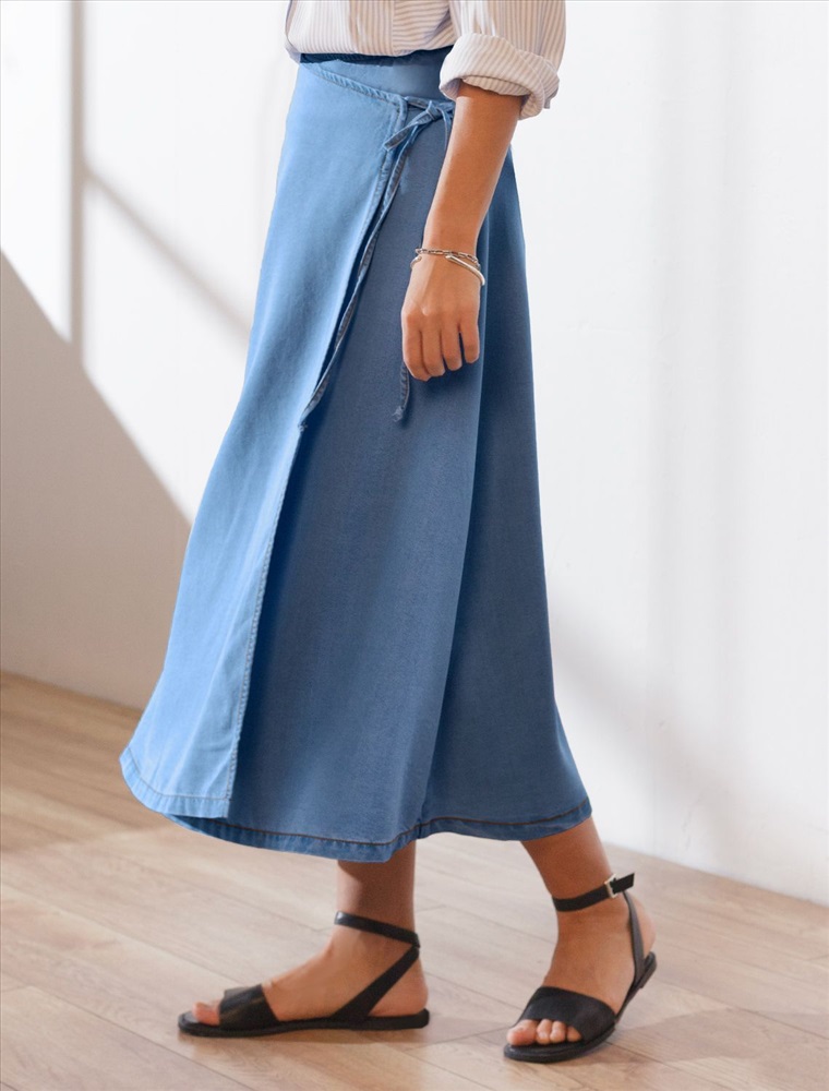Юбка миди на запах А-силуэта из джинсового лиоцелла 5 фото
