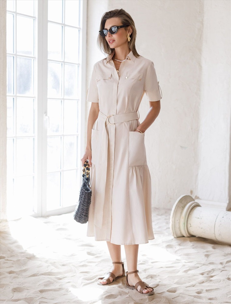 Платье-рубашка с поясом и карманами из джинсового лиоцелла 7 фото
