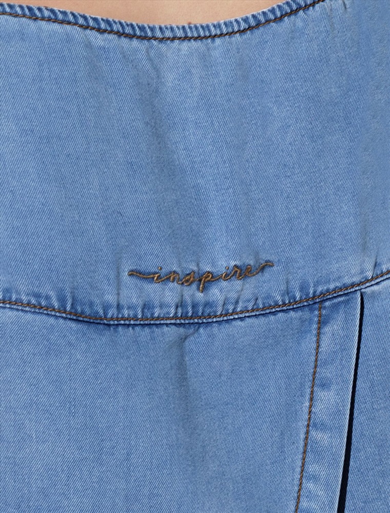 Укороченная блузка с кулиской из джинсового лиоцелла 6 фото