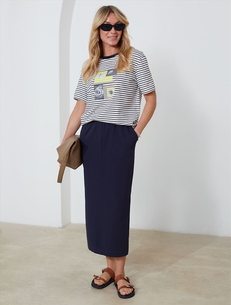 Блузка свободного силуэта в полоску из эластичного хлопка 9 фото