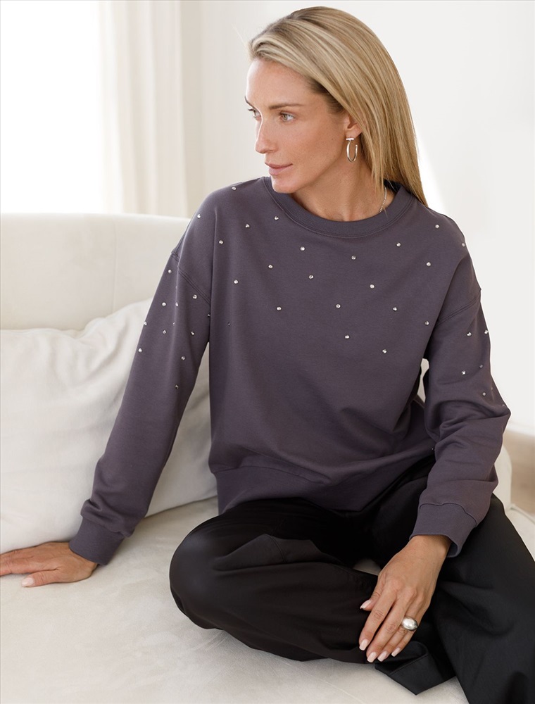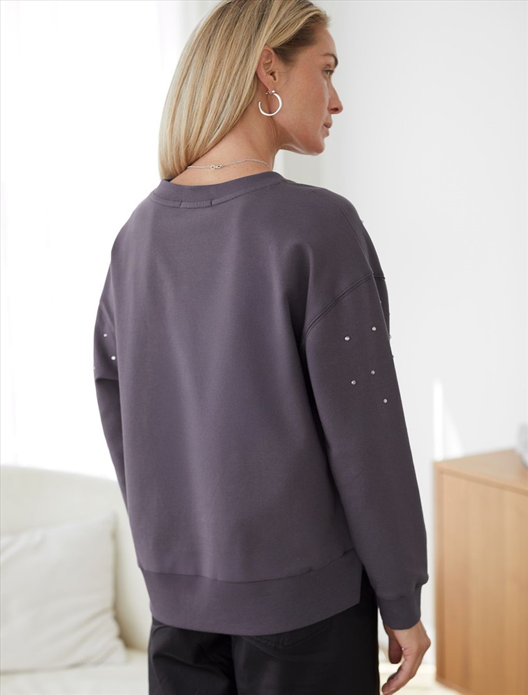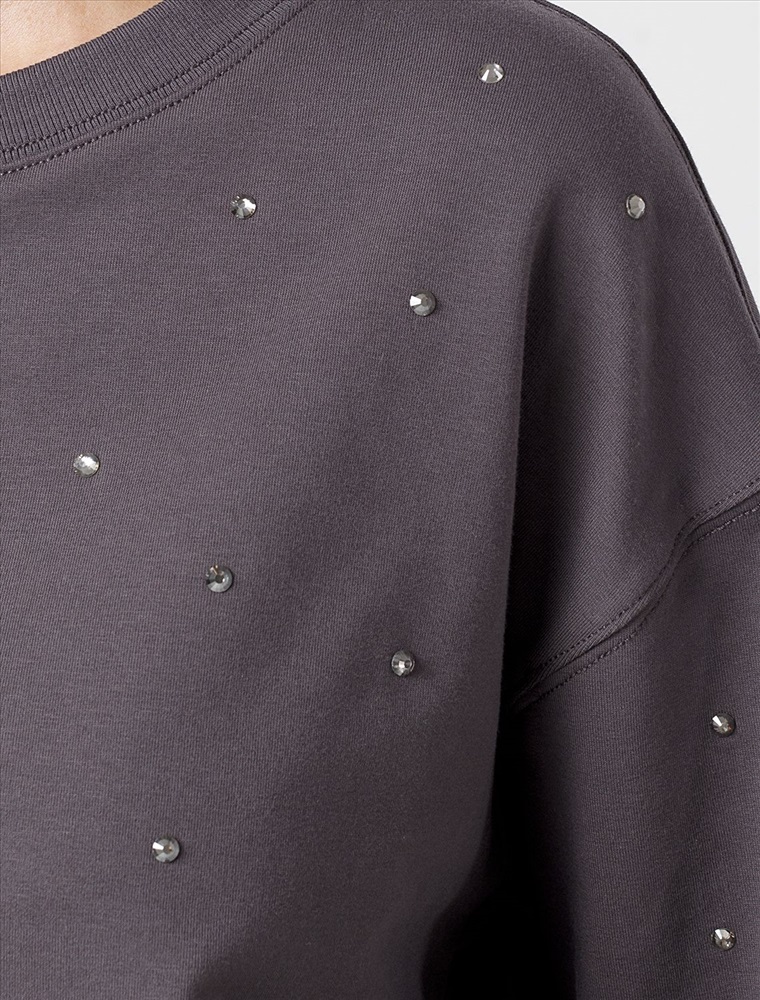 Свитшот из эластичного футера с принтом стразами 8 фото