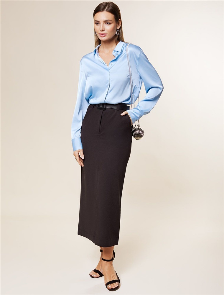 Юбка миди с двумя разрезами из поливискозы с эластаном 8 фото