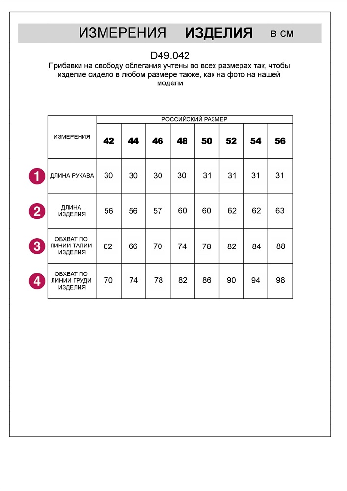 Все наши изделия сшиты на рост 170 см, если ваш рост намного отличается от заявленного, то учитывайте это при выборе моделей. Измерения каждого изделия указаны на сайте в карточках товара среди фотографий. Далее нужно сравнить полученные измерения с величинами в таблице.